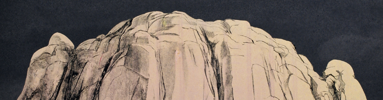 Drawing rocks on lithographic limestone rock feels somehow very right. The rock formations in these prints originated under the great inland sea that covered the center of North America millions of years ago. Lifting with the rising of the continent, they are now over a mile high and continue to be shaped by the sandblasting of the wind.