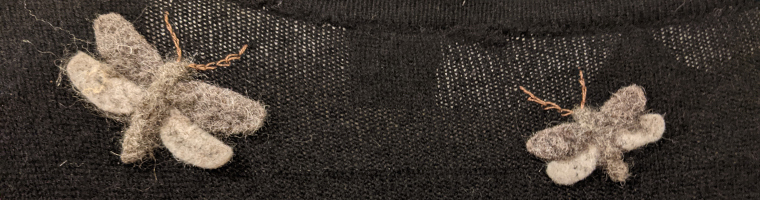 Judith Klausner leads a workshop on using needle-felted moth patches to repair moth holes in sweaters. Much as the Japanese art of kintsugi mends pottery by highlighting the cracks, this approach to mending acknowledges and celebrates the journey of the sweater and its role in our complex relationship with the world around us.