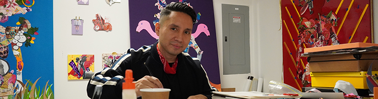 Hinojosa, the child of immigrants, makes complex collage-drawings constructed from found objects that intimately challenge greed, obsessive consumption, and the social stratification of American culture. In his art and in this event, he explores what it means to be “from” a place. Through community engagement and storytelling, Hinojosa aims to reveal the many shared experiences we all have as Americans.